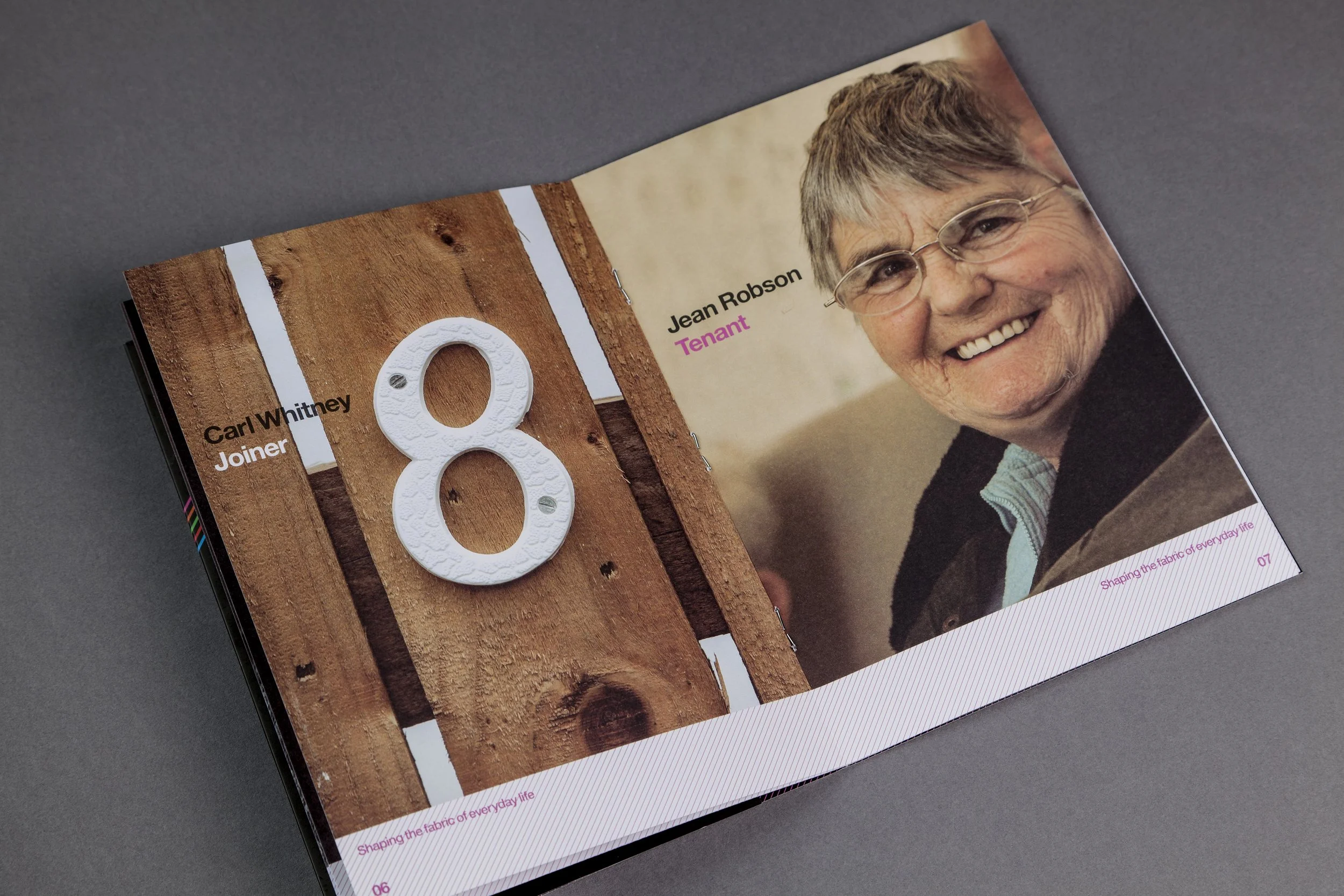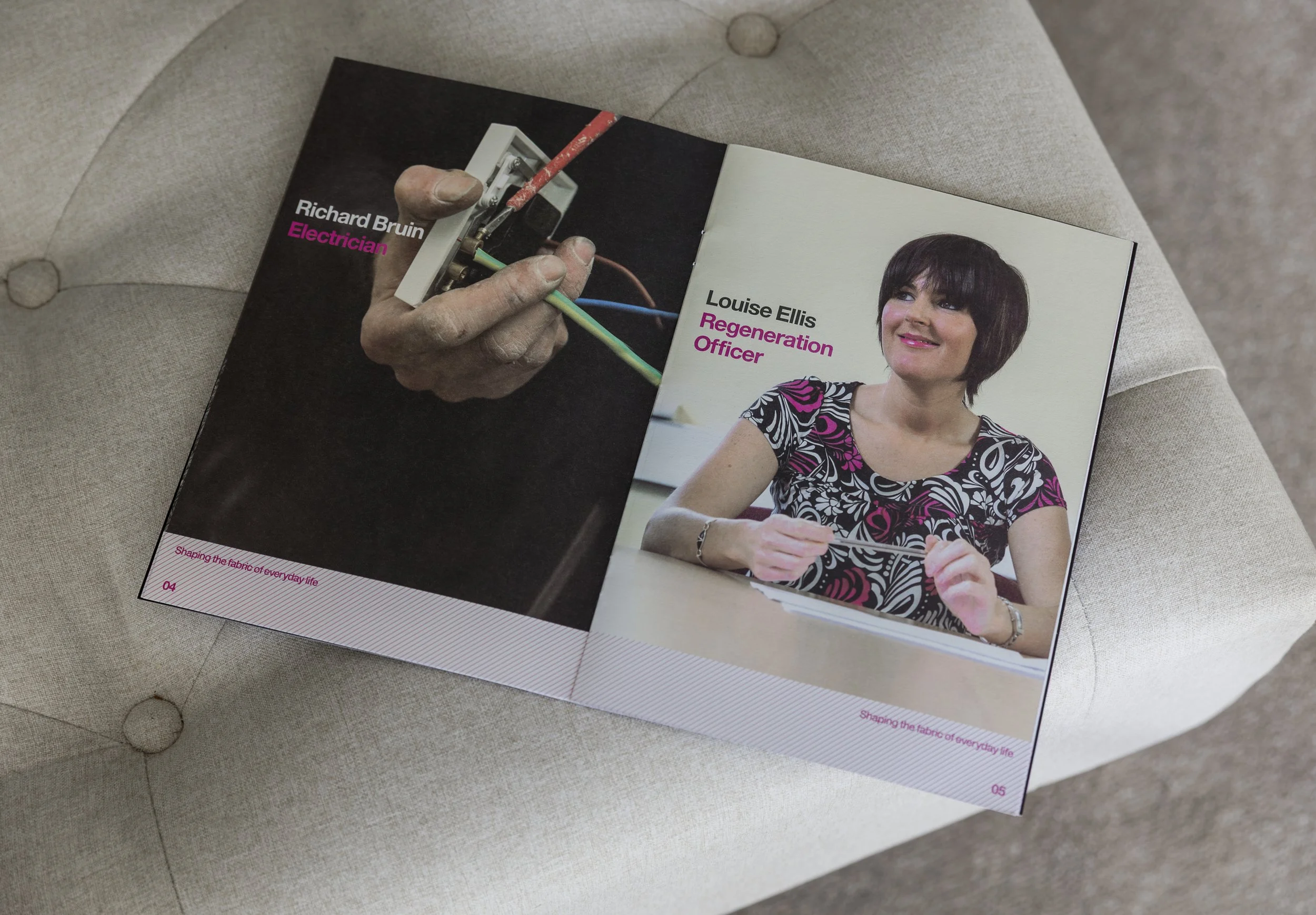 As Fabrick was the main parent group brand, there was a need for a style to be utilised by the operating companies. A logo style was developed to rebrand the existing housing associations of Tees Valley and Erimus Housing and which could allow for other acquisitions to be easily brought in line. Each business took on a colour from the main palette and utilised a symbol derived from the parent ‘weave’. Text was set in clean, legible typeface taken from the parent brand.