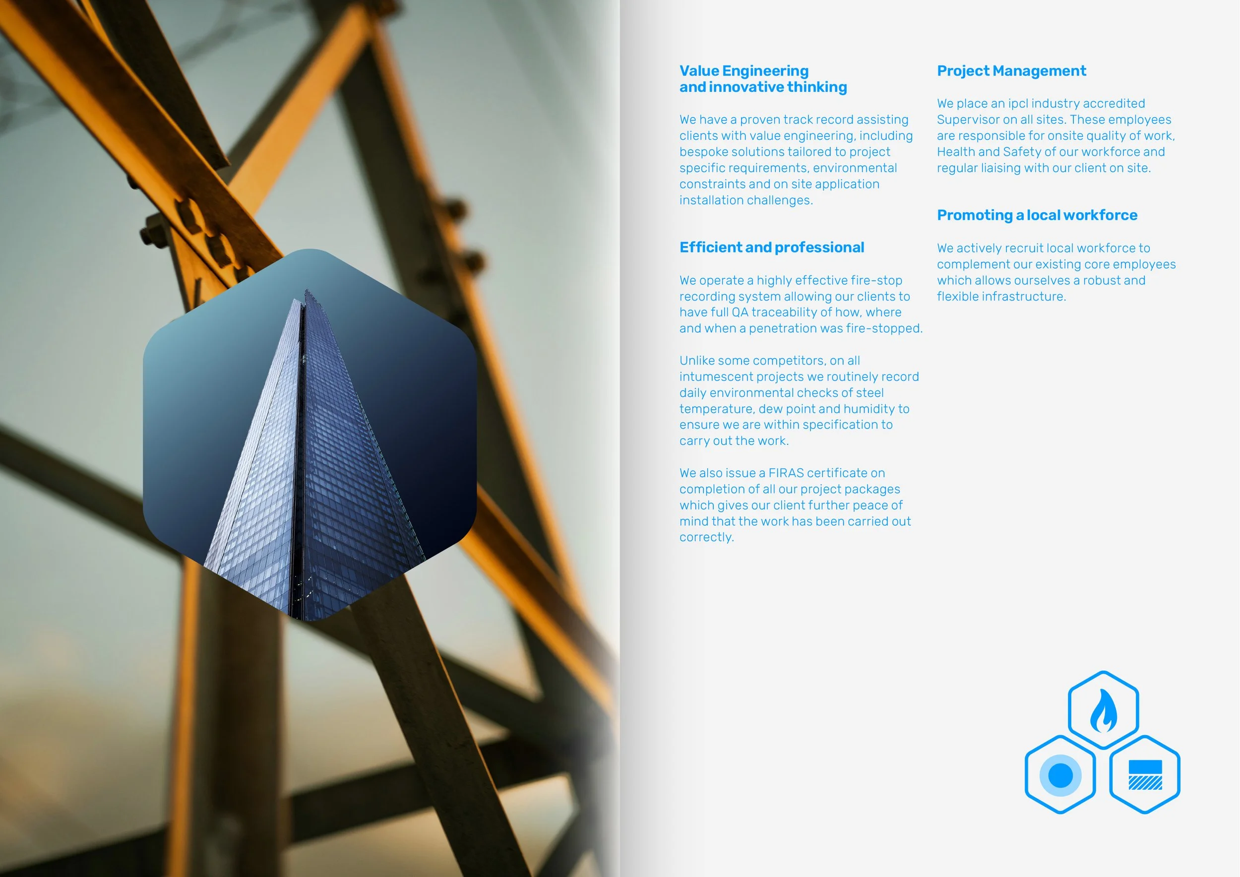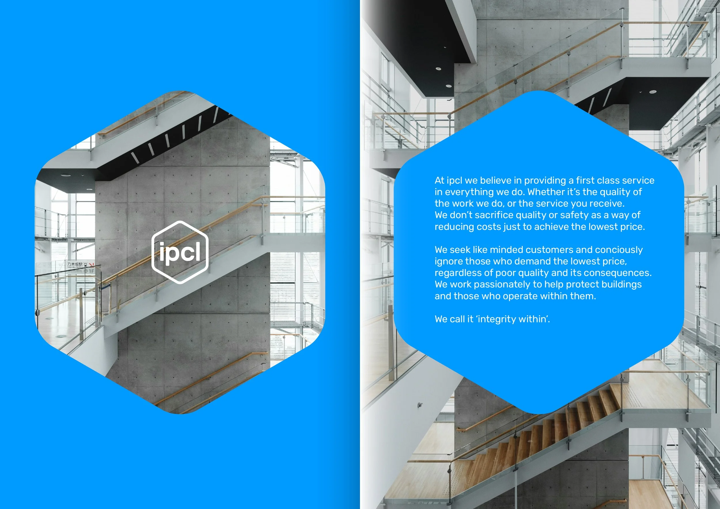 IPCL is a business that provides fireproofing for steelwork on critical infrastructure and large structures like the Shard in London. The business was ready for a brand to take them forward as they looked to expand. It was vital though not to forget what got them where they were - a personal and hugely trustworthy approach. The new brand is built around the statement “Integrity within” which hints at the fact that all their services protect the internal structures of buildings, and also the drive and personality of the people running the company.